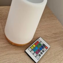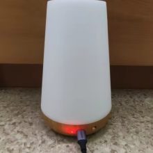 This lampshade is very beautiful has internal battery the light of it is very nice has several kinds of colors every time you touch on top color change second it turns off and has a power off Button