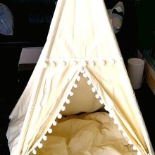 This teepee tent has been a fantastic addition to our home. my kids love having their own special place to play and use their imagination. the setup was very easy and the materials are of high quality. the fabric is durable and the wooden poles are strong, ensuring the tent stays upright. it’s spacious enough for my kids to play in comfortably and they love the cute design. the window adds an extra element of fun. i appreciate how easy it is to take down and store when not in use. this tent has provided countless hours of joy and creativity for my children. highly recommend it to anyone looking for a fun and durable play tent.