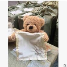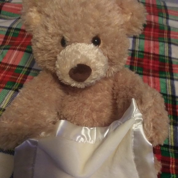 Add the perfect playtime companion to your baby’s collection of toys. Our super-soft Peek-a-Boo Bear Toy is ready to play peek-a-boo with his own warm, satin-detailed blanket. Keep your child entertained with a new furry friend that talks and moves.